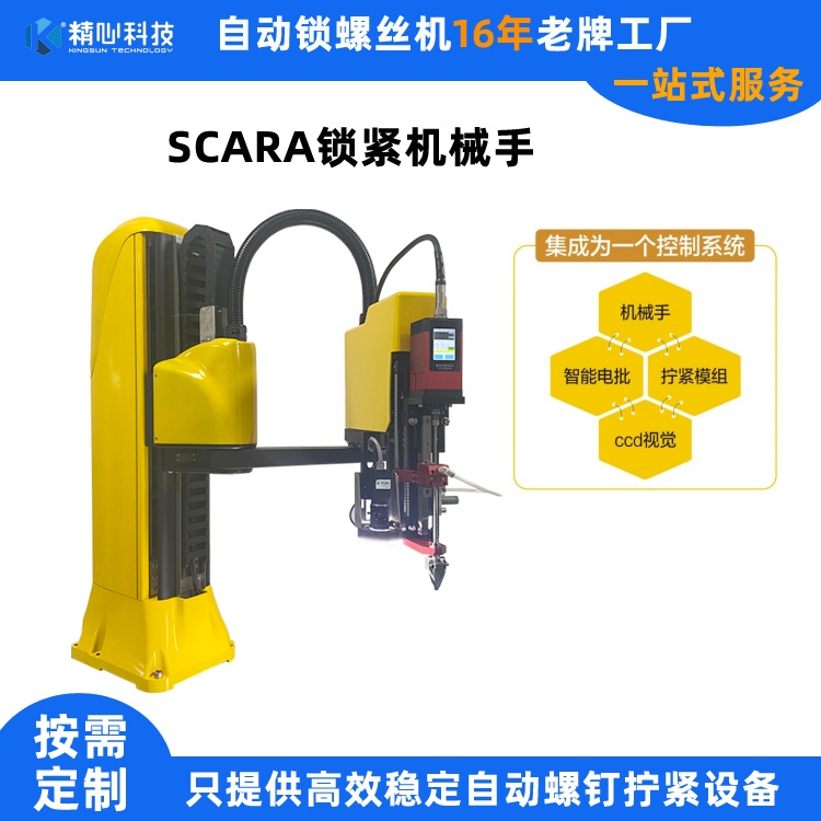精心科技16年來(lái)一直專注螺釘鎖緊、輸送領(lǐng)域。經(jīng)過(guò)不斷的研發(fā)創(chuàng)新,將機(jī)械手、智能電批、擰緊模組和CCD視覺(jué)檢測(cè)集成為一個(gè)控制系統(tǒng),在簡(jiǎn)便設(shè)備的操作使用的同時(shí)還能精準(zhǔn)高效的鎖附螺釘。通過(guò)單元間的配合使用,鎖緊機(jī)械手可以適用更多的尺寸和應(yīng)用場(chǎng)景。精心科技鎖螺絲機(jī)械手擁有先進(jìn)的自主學(xué)習(xí)功能,讓操作變得更加簡(jiǎn)單。