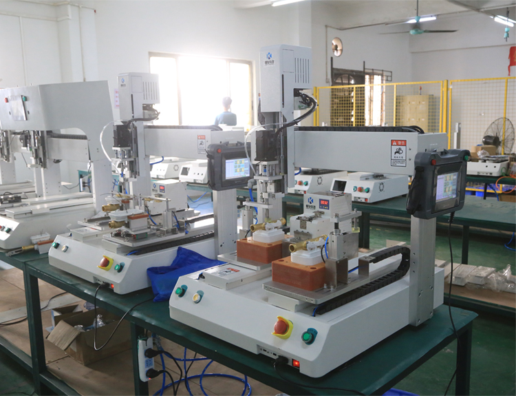 傳統(tǒng)的螺絲鎖附需要人工對(duì)螺絲進(jìn)行抓取然后擰緊螺絲,不僅麻煩而且因?yàn)殚L時(shí)間的擰緊動(dòng)作,可能會(huì)出現(xiàn)螺絲打滑及沒有鎖附到底的情況發(fā)生。而設(shè)備鎖附它可以通過對(duì)程序的設(shè)定,精準(zhǔn)且有效的控制扭力和鎖附的位置。附加的自動(dòng)檢測功能,還能有效的避免螺釘?shù)母℃i、滑牙、漏鎖等問題。有效確保產(chǎn)品品質(zhì)。